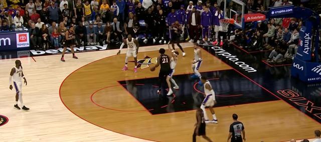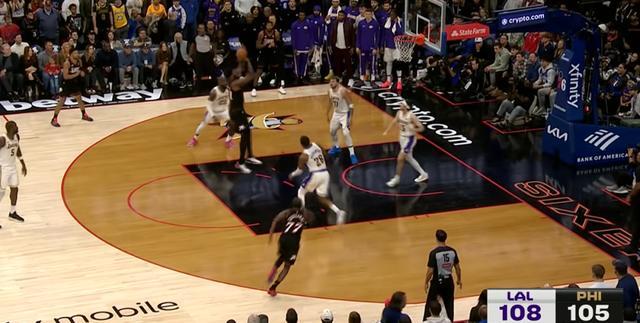 恩比德背身单打里夫斯,恩比德转身中投,恩比德打铁……