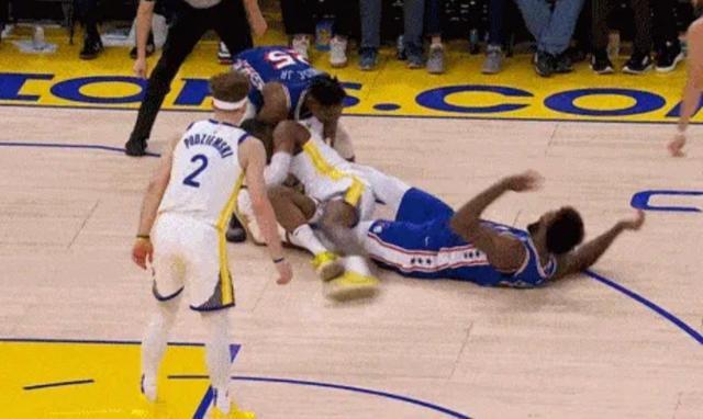 但那个赛季65场的硬性指标,让恩比德不得不在膝盖受伤歇了两场比赛之后就在对阵勇士的比赛里匆匆复出。在场上的恩比德明显感觉到膝盖还在疼痛,动作都是变形的,终于在一次倒地之后,恩比德的膝盖彻底废掉了。