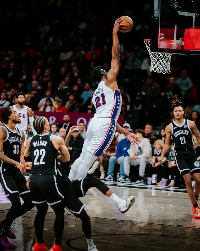 赛季至今恩比德场均18.2分5.6篮板3助攻,投篮命中率40.7%,三分命中率21.4%,得分、篮板、投篮命中率、三分命中率等多项数据都是生涯新低。